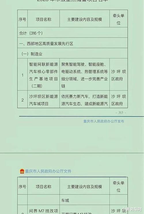 “问界M7技改项目”,政府亲自给技术升级铺路。“智能驾驶/座舱核心零部件基地”“赛力斯汽车生态城两大配套项目”,这一套组合拳下来,直接把问界送上了“C位”。市级重点项目有政策绿灯和资源直通车,重庆这明显是要把赛力斯和问界打造成首家世界五百强啊!